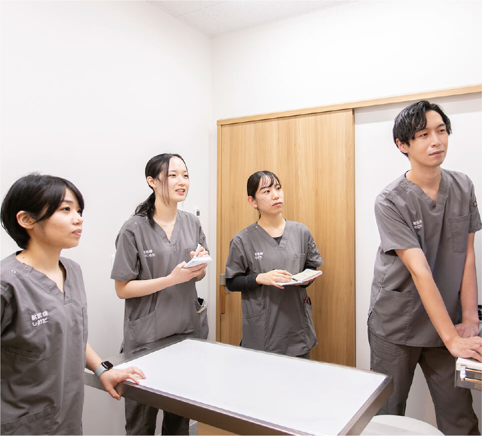 木更津みき動物病院は、休診日を設けず、いつでもご家族を支えられる体制を整えています。犬と猫の診察室を分けた快適な環境、広々とした駐車場、充実した医療設備。そして獣医師・看護師・スタッフが力を合わせるチーム医療により、一般診療から重症例まで幅広く対応いたします。