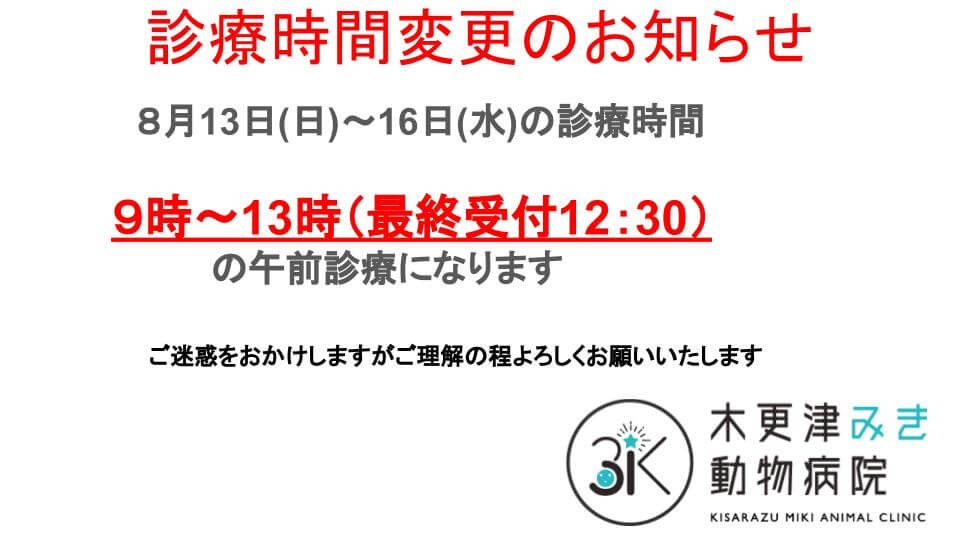 お盆診療についてのお知らせです。ご確認ください。