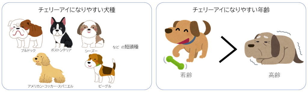 この瞬膜腺が本来の位置から飛び出してしまう病気をチェリーアイと言います。