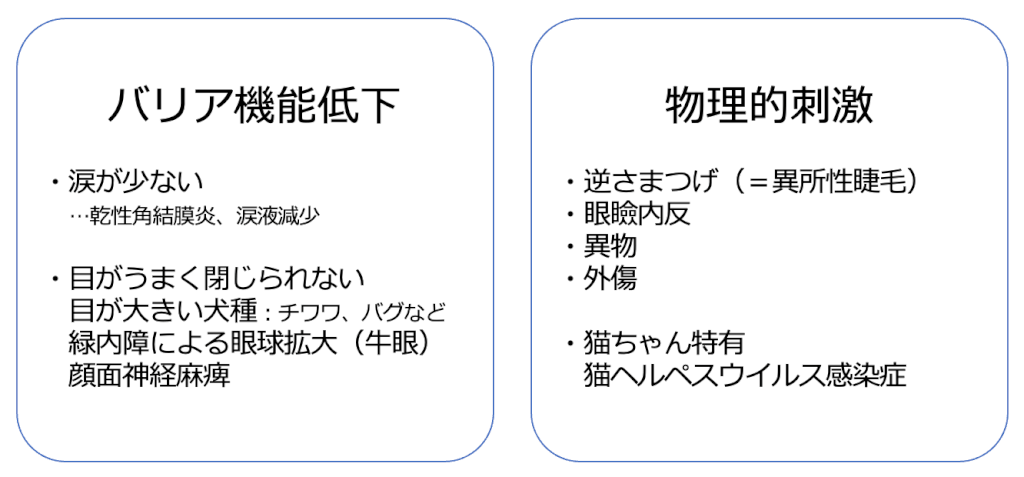 細菌感染に弱くなり、角膜潰瘍の悪化の要因にもなります。