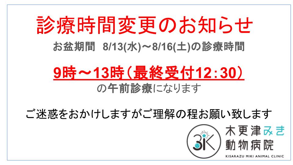 皆様こんにちは!お盆診療についてのお知らせです。ご確認ください。