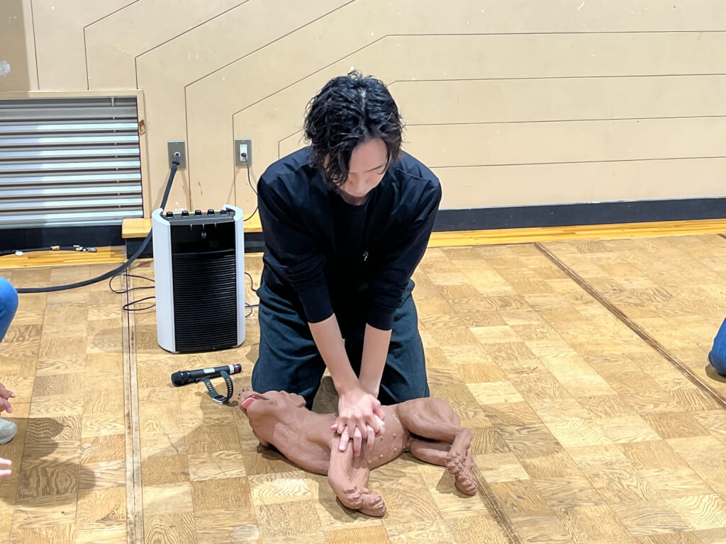 実際に飼い主さんが行える心肺蘇生(CPR)を体験していただきました。