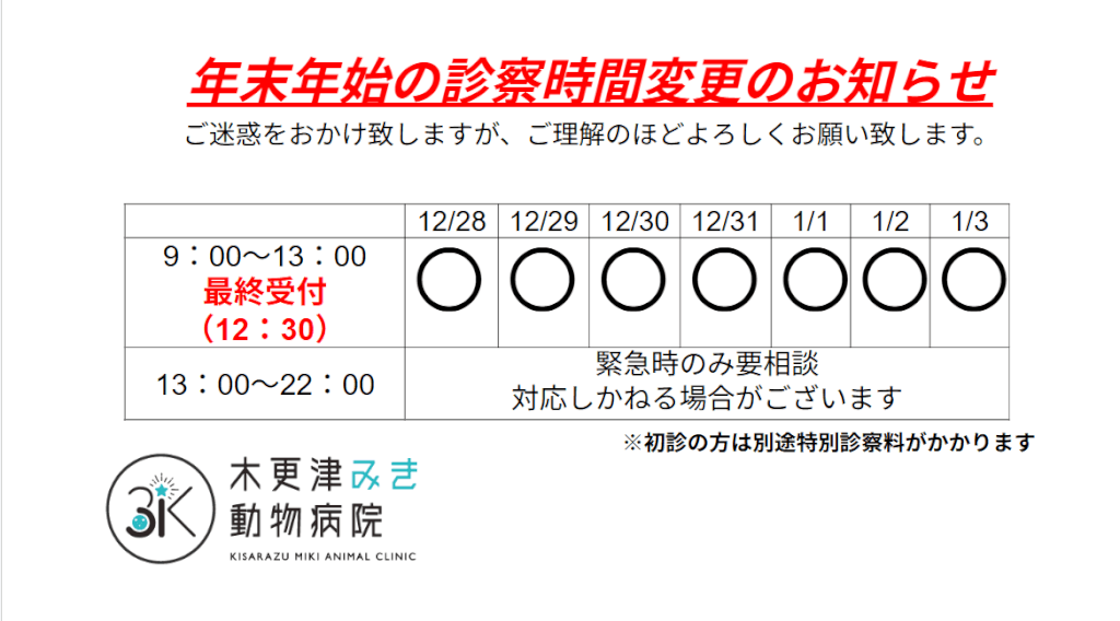 またフードや内服、サプリメントなどの発注依頼も承ることは出来ますが、お渡しは年始(1/5~)となります。
