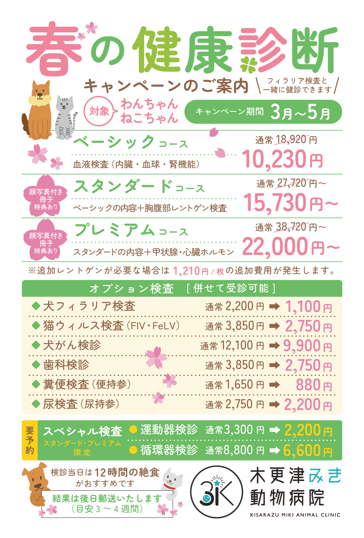またオプションでは、春に必要なフィラリア検査を始めとした